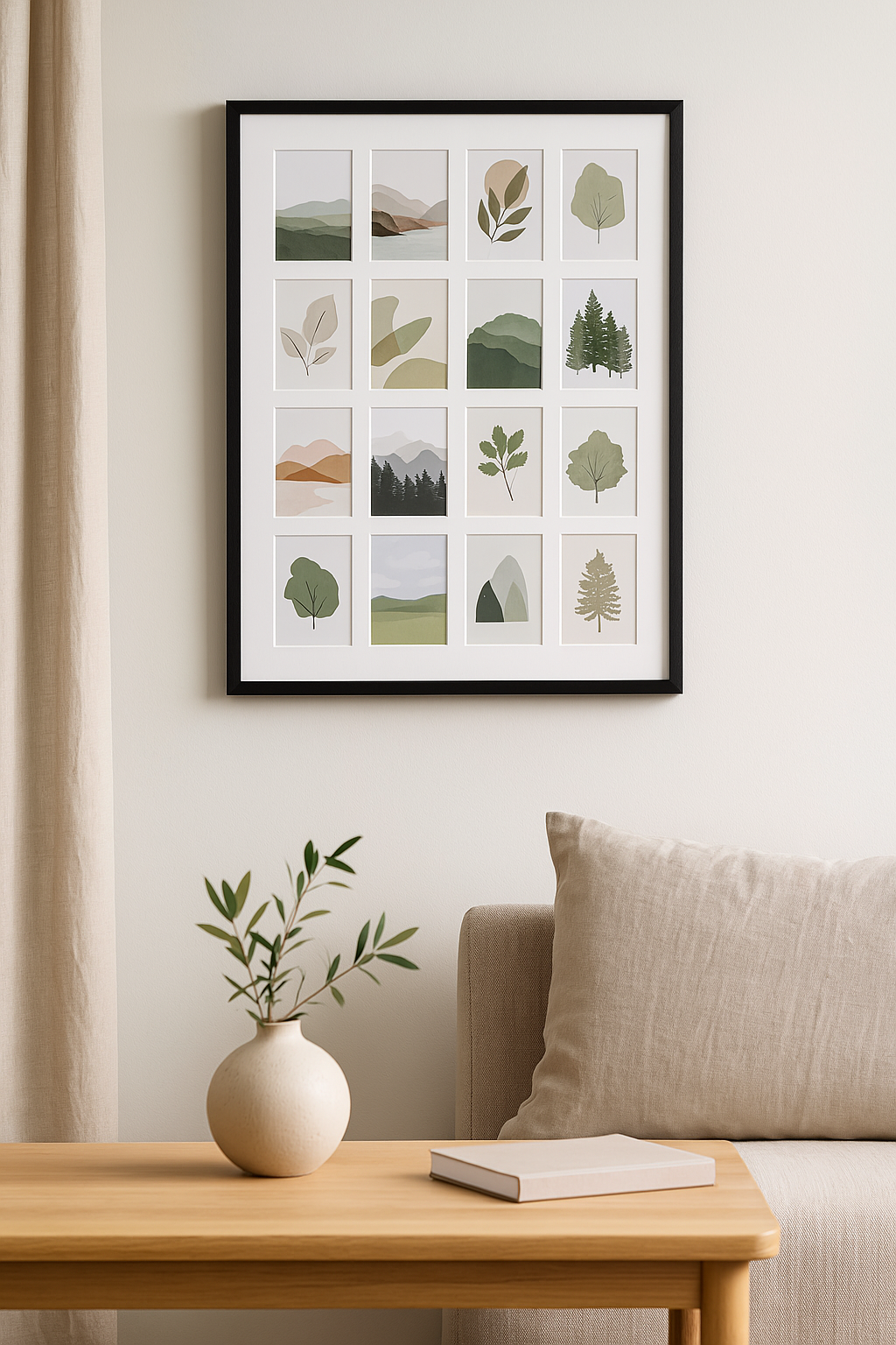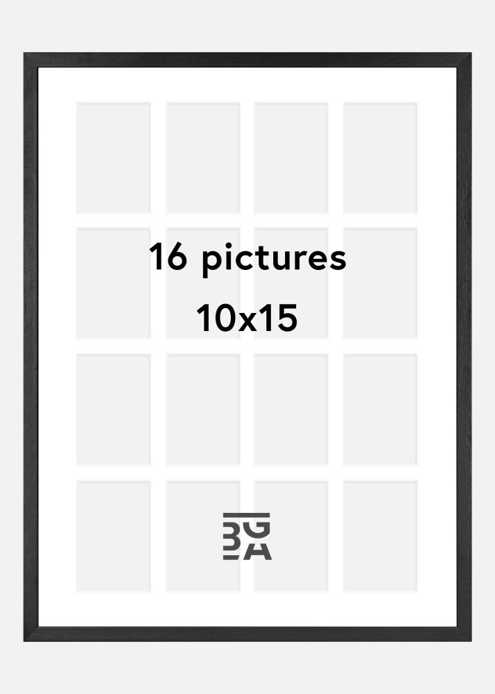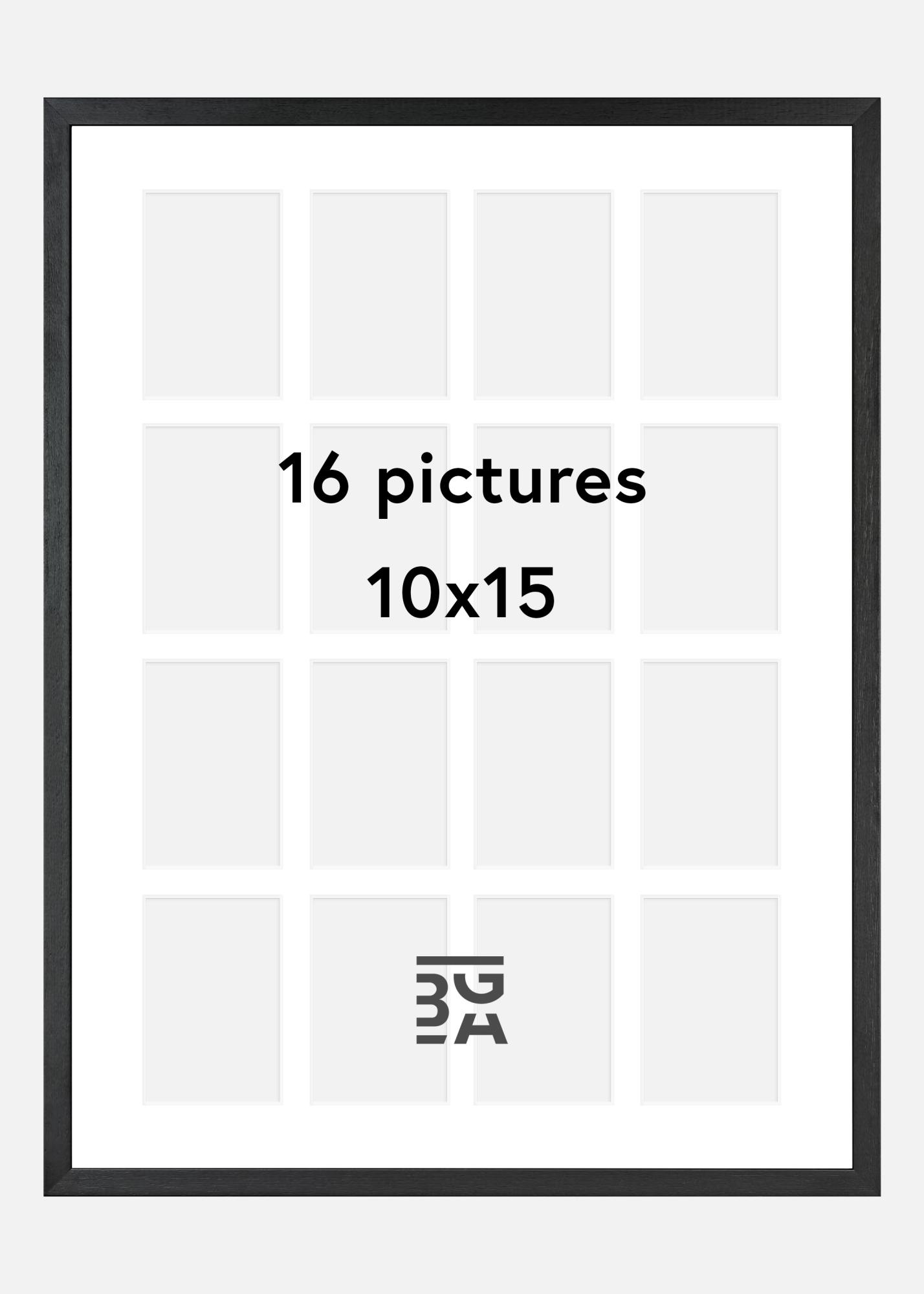 Black Wood med passepartout 16 bilder collage, passer perfekt til bilder av barna, kjæledyrene eller kanskje fra den siste sommerferien? Den svarte, stilrene rammen i kombinasjon med den hvite passepartouten vil løfte fram fargene i bildene, og gjør seg også veldig godt til svarthvitt bilder.
