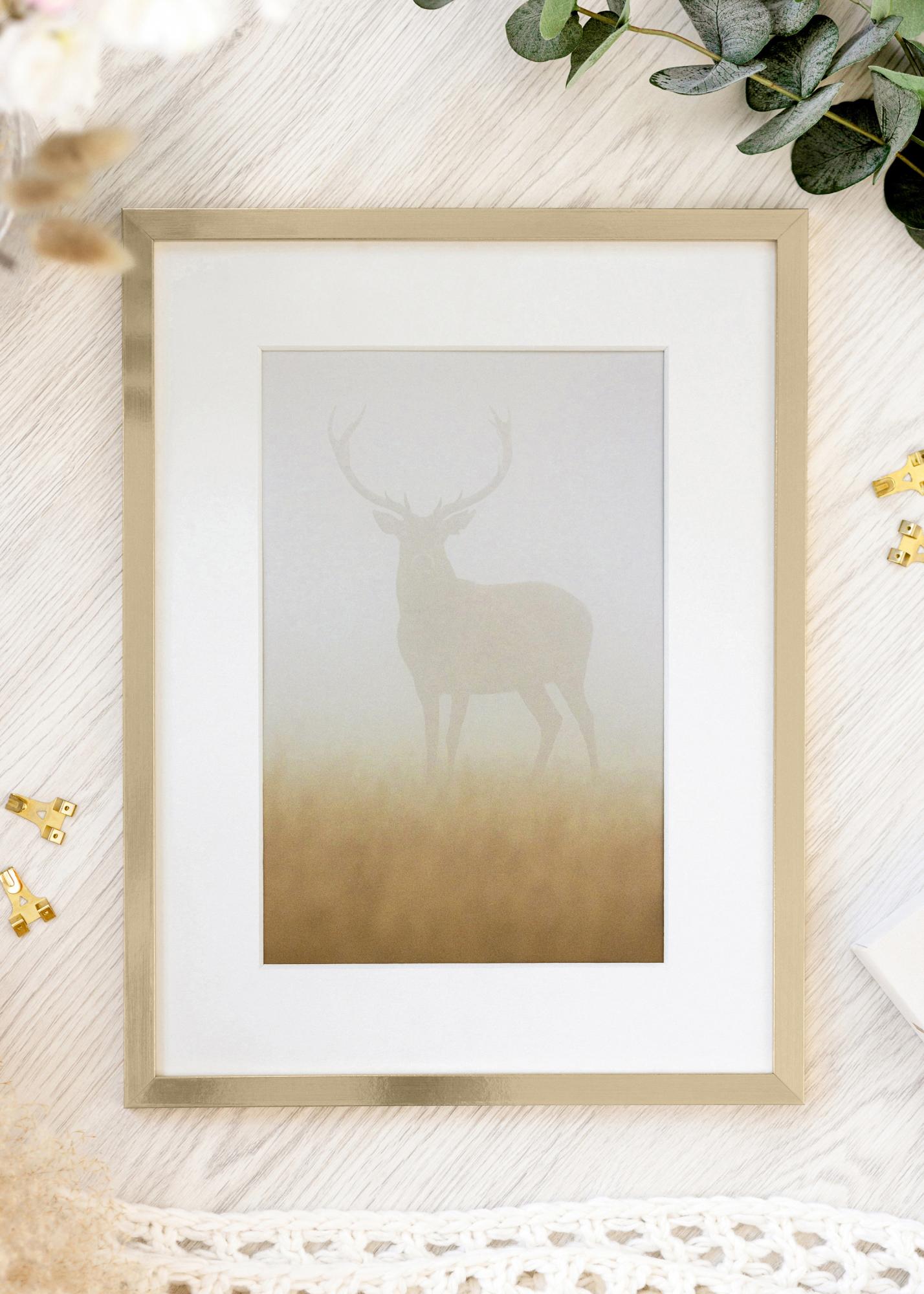 En nøytral og vakker gullramme som dette fremhever og gir liv til motivet ditt – uten at det stjeler oppmerksomheten. Bruk rammen som del av en gallerivegg, eller la den skinne for seg selv.
