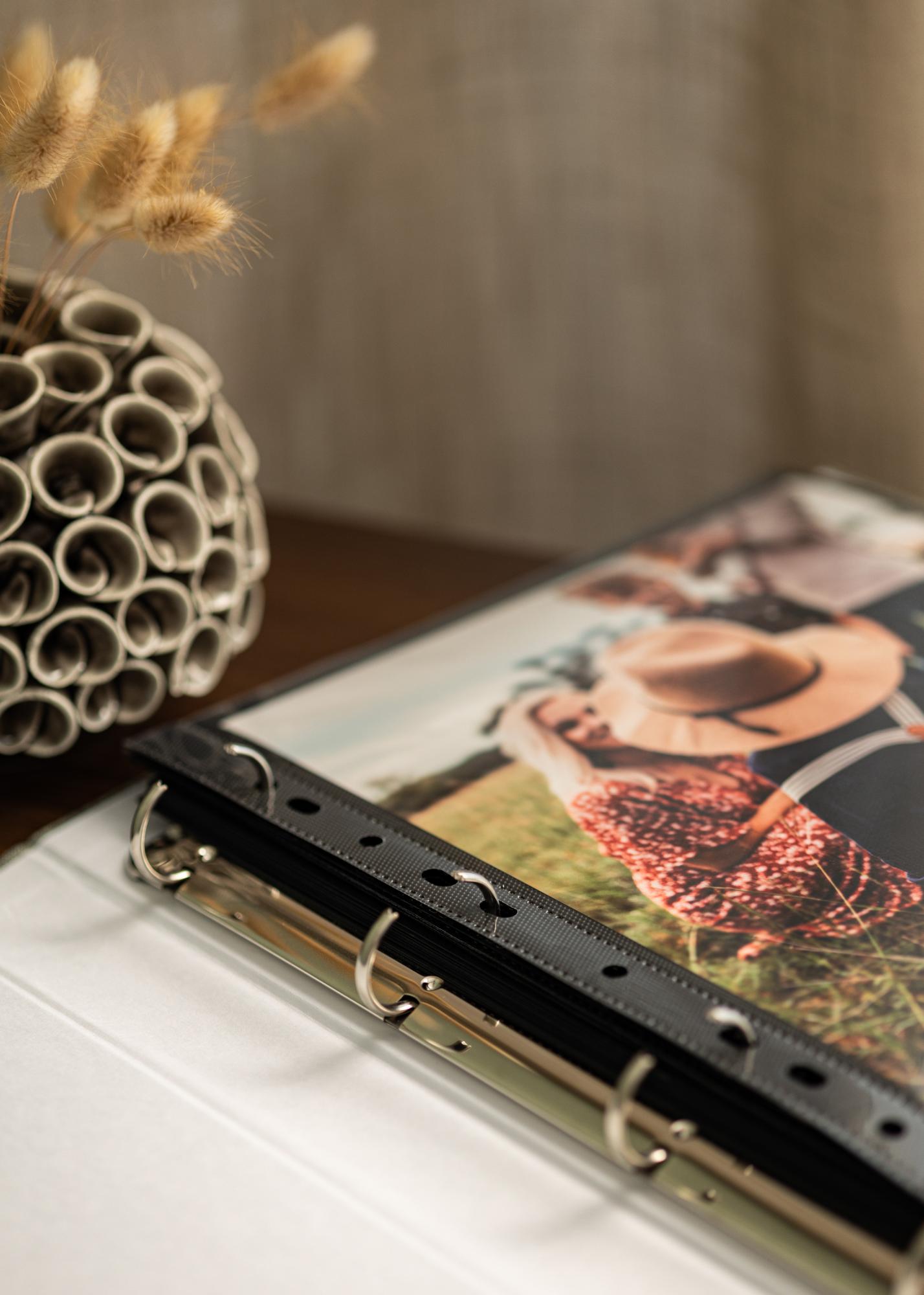 Ultimate Fotolommer 20x25 cm Stående er et sett med 5 svarte albumblader i størrelsen 23,5x32,5 cm. De rommer totalt 10 stående bilder i formatet 20x25 cm og har også plass til egne notater, perfekt for å skrive dato, navn eller andre minneverdige detaljer. En praktisk løsning for å organisere og bevare dine bilder på en stilren måte.