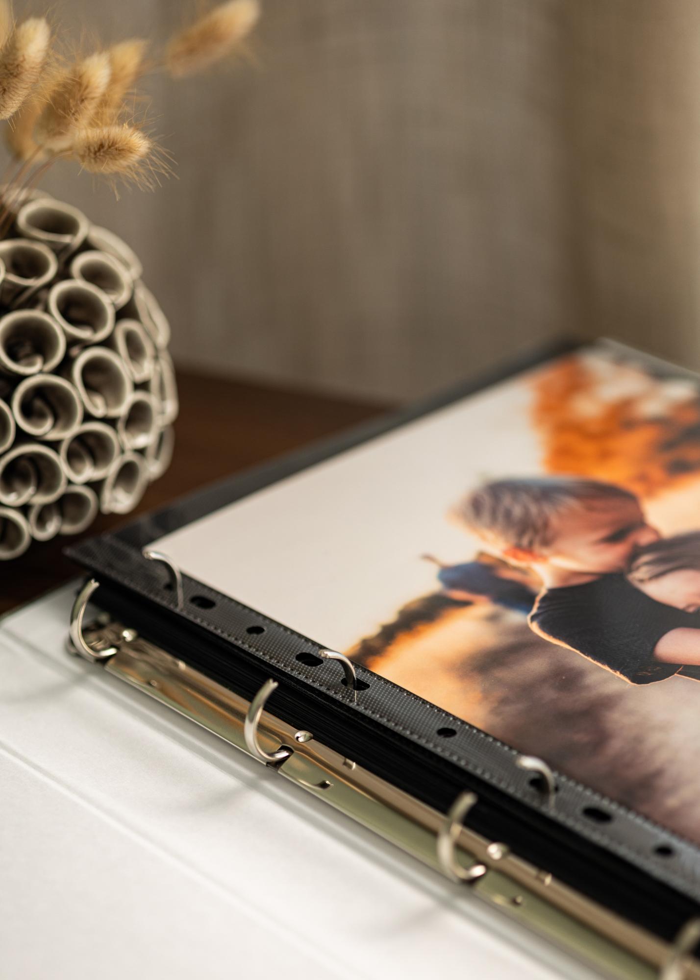 Ultimate Fotolommer 21x29,7 cm A4 Stående er et sett med 5 svarte albumark i størrelsen 23,5x32,5 cm. De rommer totalt 10 stående bilder i A4-format (21x29,7 cm). En praktisk og stilren løsning for å organisere og bevare dine bilder på en sikker og oversiktlig måte.