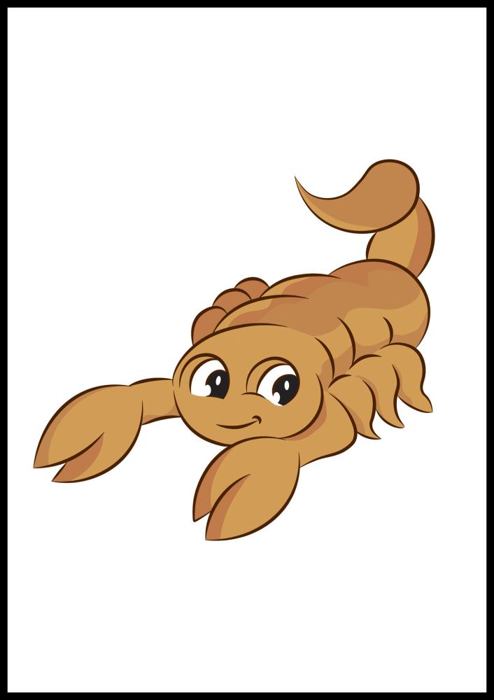 Det finnes ekle, farlige skorpioner som stikker folk med de skarpe piggene sine, og så finnes det skorpionbabyer som denne. Denne posteren har et motiv av en lysebrun liten skorpion med glad munn og store øyne. Siden den finnes i en rekke ulike størrelser, finner du lett en som passer i barneværelset hjemme hos dere. Kompletter gjerne med en svart eller hvit bilderamme for å fremheve motivet.