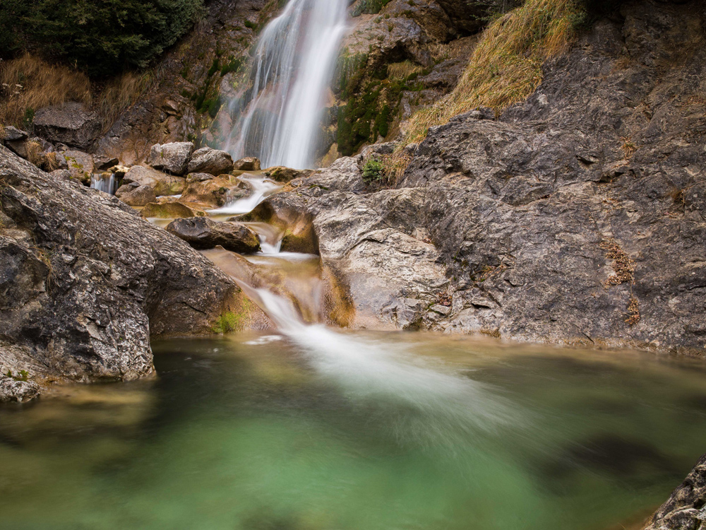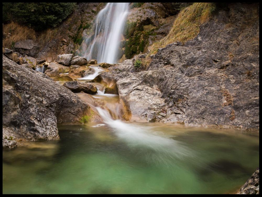 Vakkert og dramatisk bilde av en foss, hvor fotografiet viser elvens stadige eroderende effekt på berggrunnen. Plakaten blir løftet av det myke, hvite vannet som beveger seg gjennom det karrige landskapet. De brune, grå og grønne nyansene gir et lunt fargeinntrykk, noe som gjør at bildet kan passe inn med alle typer innredning. Dette bildet passer i de fleste rammer, så det kan enkelt matches med øvrig dekor.