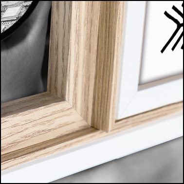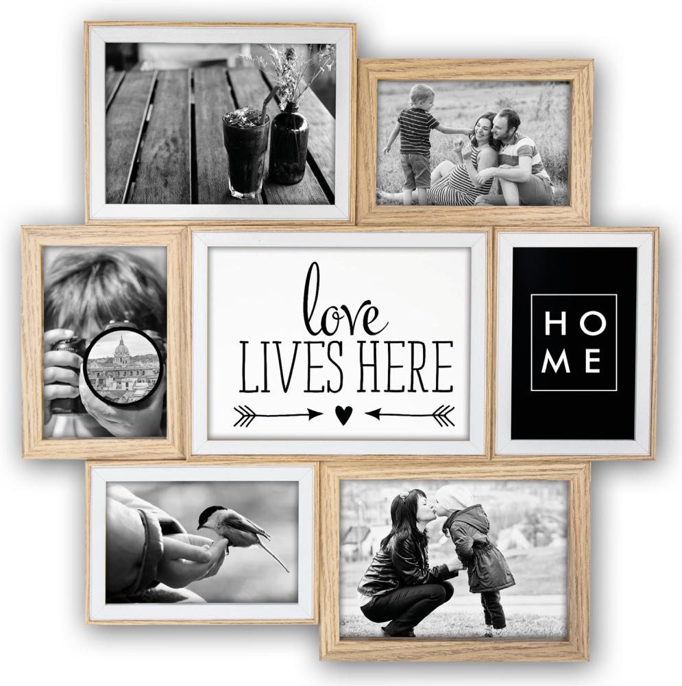 Start rammevelgeren »Stilig collageramme i tre med plass for 7 bilder i varierende størrelser.