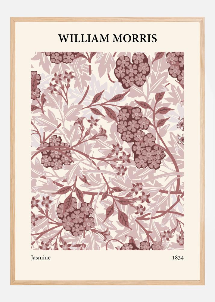 Denne William Morris-plakaten, med tittelen "Jasmine", er en sublim tolkning av naturens underverker, forvandlet til et elegant og detaljerikt kunstverk. Mønsteret er en herlig komposisjon av blomster og blader i nyanser av rosa og brun, som gjenskaper den varme og innbydende følelsen av en blomstrende hage. Hvert element er nøye fremstilt for å fange essensen av Morris' lidenskap for natur og design, og gir et tidløst inntrykk som aldri går av moten.