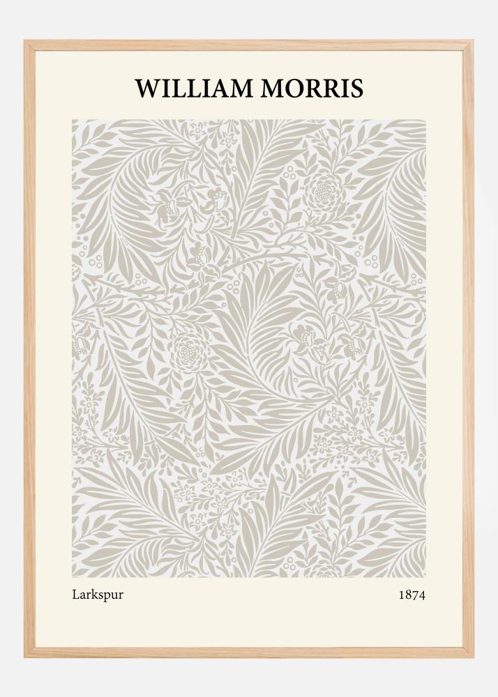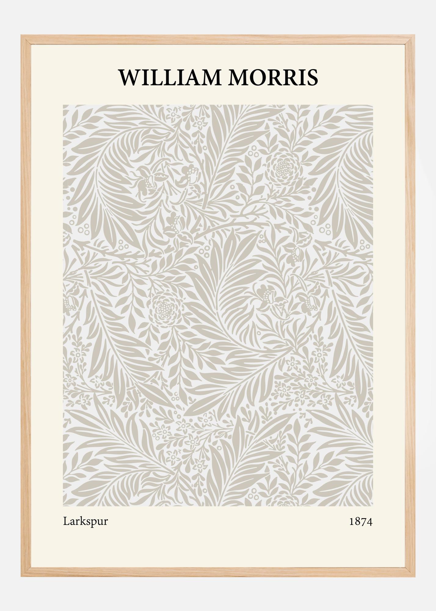 Med en overdådig flytende komposisjon av blomster og blader, tilbyr denne plakaten en rolig men kompleks utsikt som fengsler betrakteren. Skapt i 1874, bærer "Larkspur" signaturen av William Morris, en av de mest innflytelsesrike designerne fra Arts and Crafts-bevegelsen. Dette trykket er en feiring av naturens skjønnhet og en forkjærlighet for detaljrike, organiske mønstre. Det er en utsøkt interiørdetalj for den som verdsetter historisk design i kombinasjon med en subtil, naturlig estetikk.