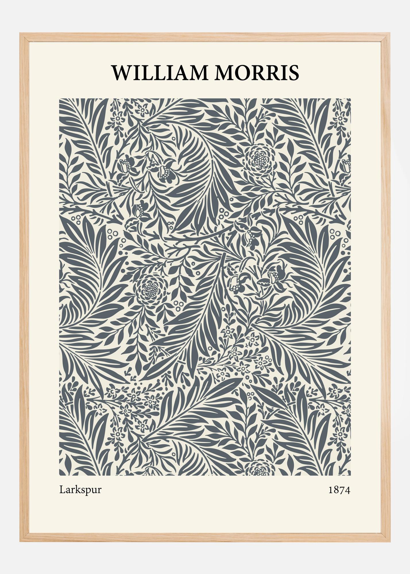 Denne William Morris-plakaten fra 1874, med tittelen "Larkspur", fremhever den utsøkte detaljrikdommen og organiske skjønnheten som er karakteristisk for Morris' design. Motivene, som blomstrer med intrikate blomster og bladverk, utstråler en tidløs eleganse som kompletterer både tradisjonelle og moderne rom. Designen er en klassisk representasjon av arts and crafts-bevegelsens verdier, der håndlaget kvalitet og naturinspirerte temaer står i sentrum.