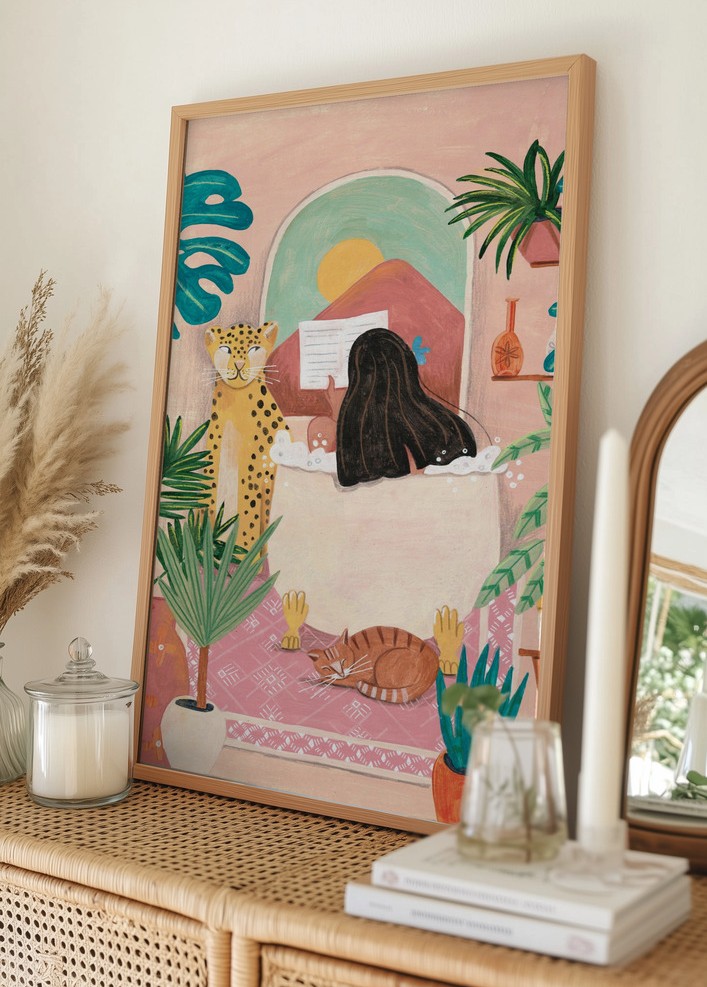 https://www.bgafotobutikk.no/woman-taking-bath-in-pink-tropical-bathroom-plakat-50x70-cm
